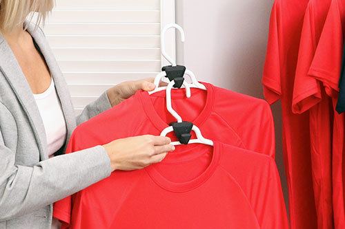 Transform your closet from cluttered to organized with ease using Space Triangles. Within seconds, you can gain extra space in your closet and organize your clothes for easy access. Simply place Space Triangles over your hangers and hang your clothing one after another. You can even daisy chain up to six shirts or more, revealing even more closet space. No more rummaging through clutter to find your favorite outfit, with Space Triangles you can easily build an outfit and stack two for additional space-saving.